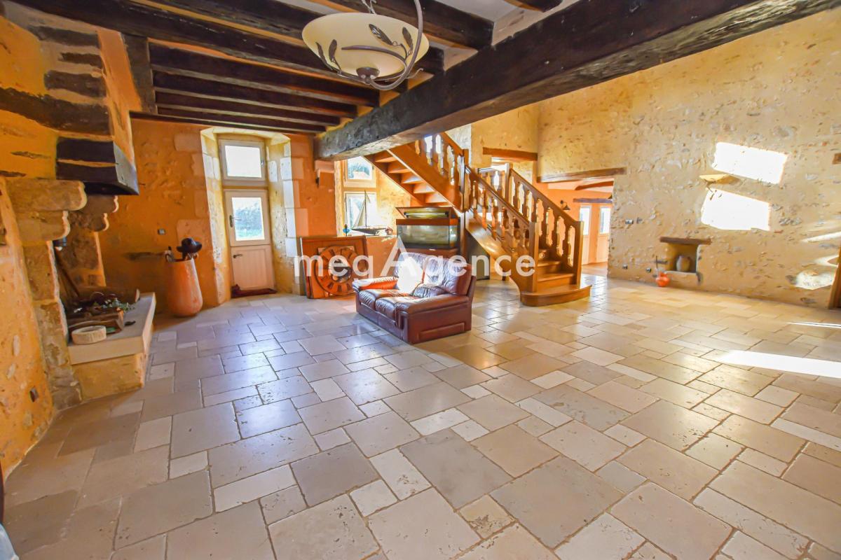 Les pierres apparentes, les poutres, les cheminées, la hauteur sous-plafond apportent un intérieur chaleureux et convivial.