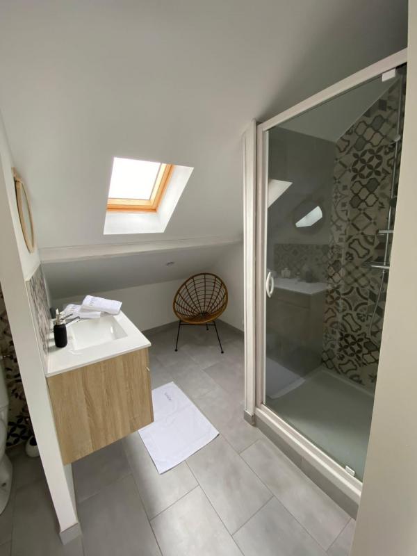 Le palier mène aux 2 pièces de 20 m2 habitables (35 m2 au sol) comprenant une pièce de vie avec cuisine aménagée, un espace nuit et une salle d'eau avec WC. Les travaux ont été réalisés en 2019.