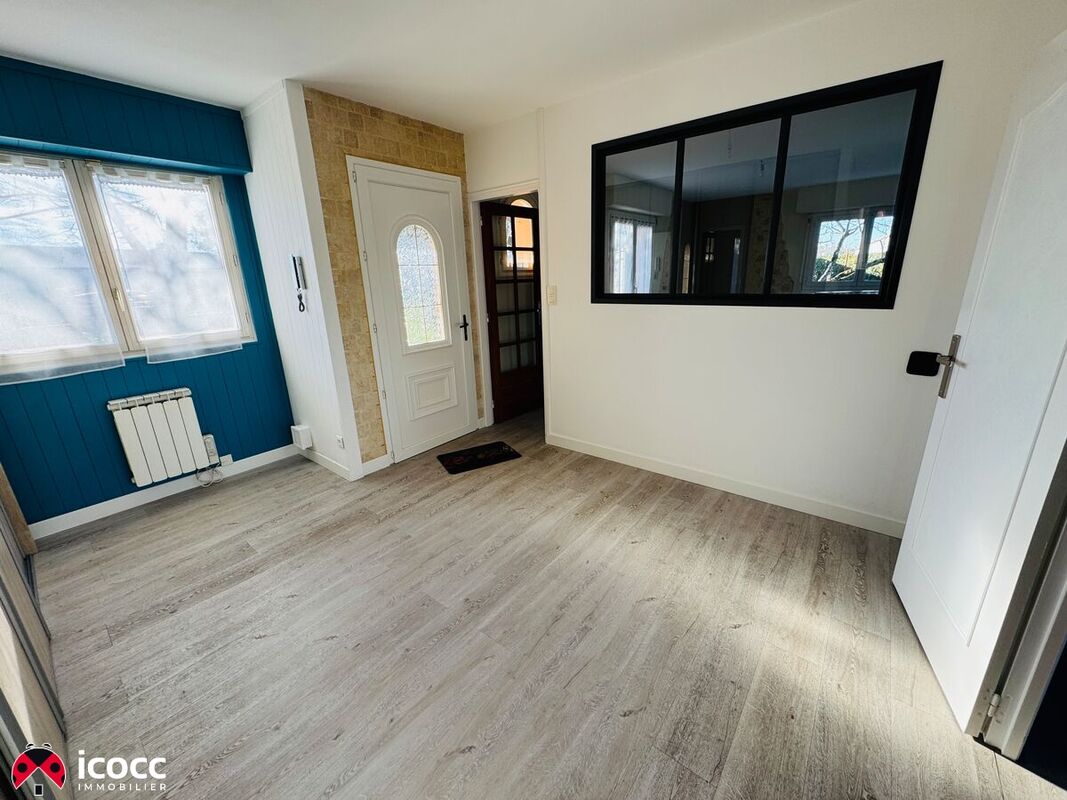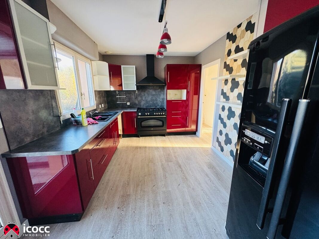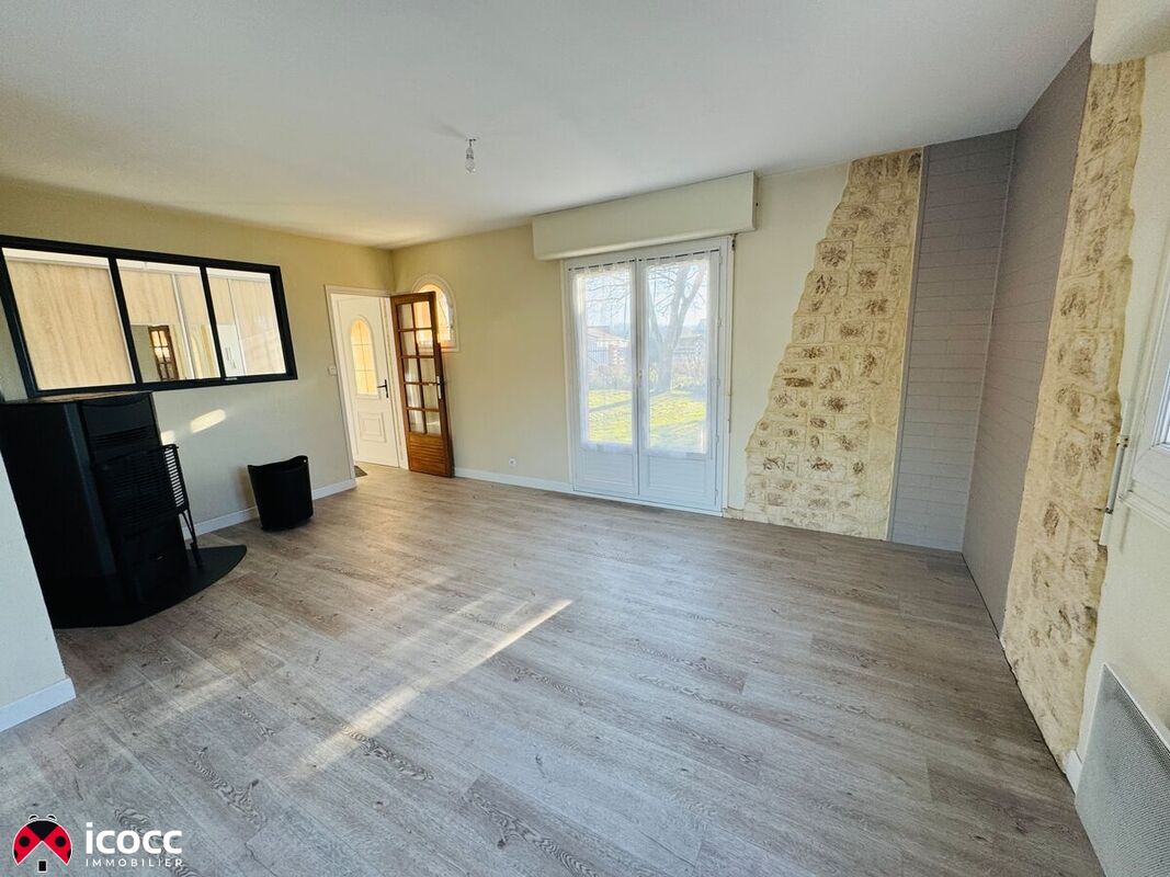 Maison de 113 m2 habitables comprenant au rez-de-chaussée entrée, séjour, cuisine séparée aménagée et équipée, wc, véranda avec climatisation et à l'étage 3 chambres avec placards, salle d'eau. Deux garages avec portes électriques dont un en sous-sol. Terrain de 1200 m2. Chauffage électrique et poêle à bois. Disponible début Avril 2026.