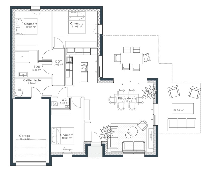 Venez découvrir cette charmante maison neuve de 3 chambres, idéalement pensée pour offrir confort et fonctionnalité. Située sur un terrain de 465 m², elle allie modernité, praticité et qualité de vie.