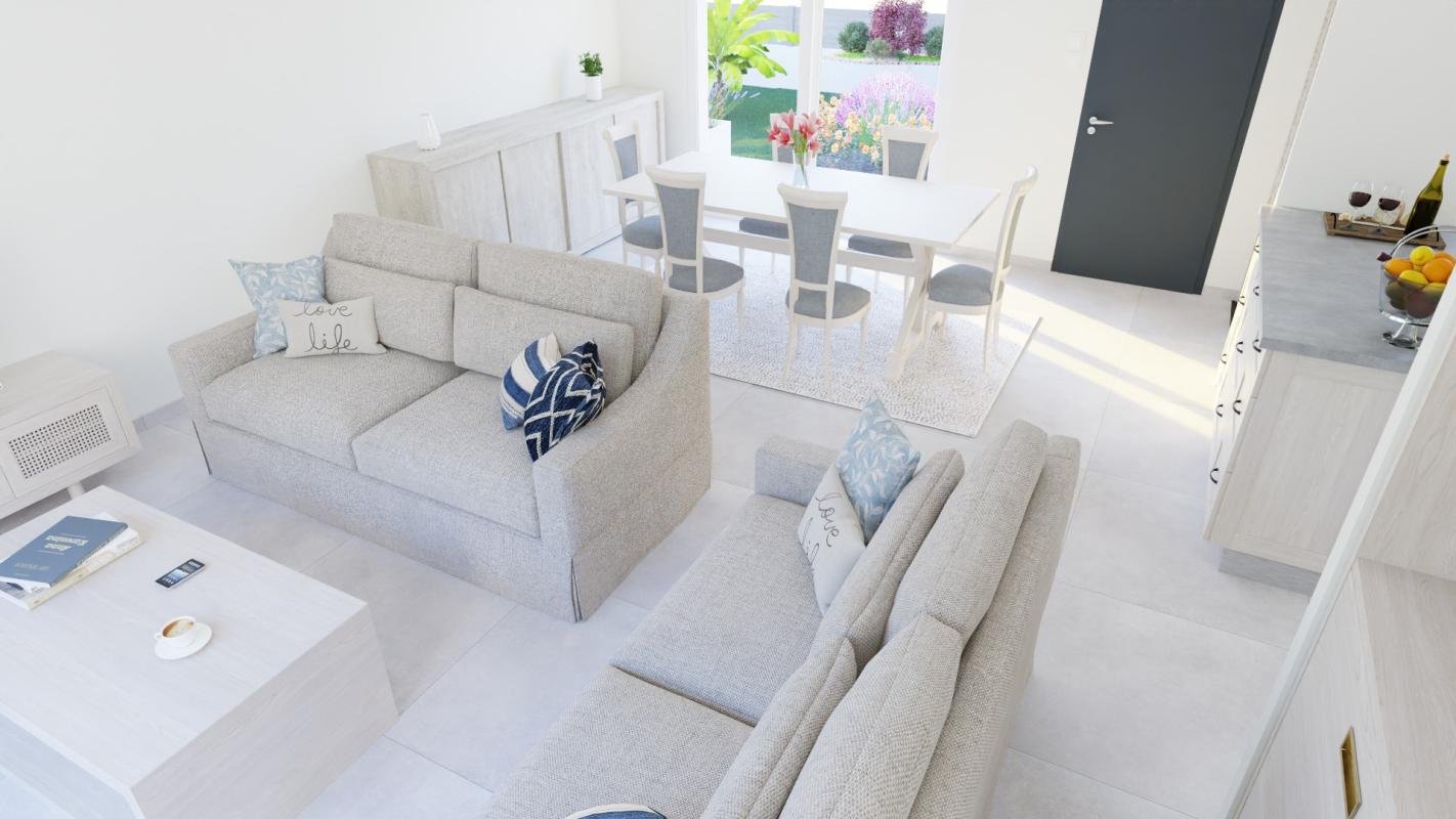 Belle pièce de vie lumineuse avec espace salon/séjour et cuisine ouverte