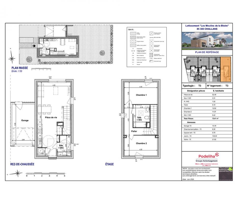 C'est une maison de type T3 (F3 / 3 pièces / 2 chambres), d'une surface habitable totale de 73.41 m² avec 1 étage, exposée Est