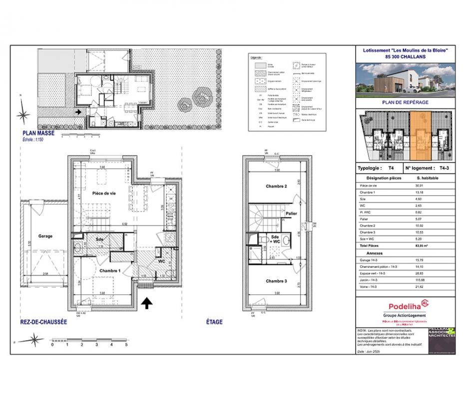 C'est une maison de type T4 (F4 / 4 pièces / 3 chambres), d'une surface habitable totale de 83.93 m² avec 1 étage, exposée Est