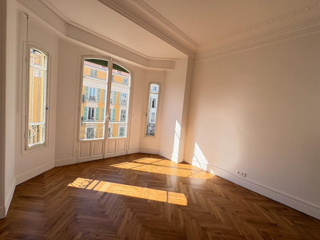 Dans copropriété de qualité, l'Azur Palace ,vaste 3 pièces de 95 m2 traversant au 4ème étage, entièrement rénové et idéalement situé proche de la mer, parquet, moulures, petit balcon sur cuisine, chauffage collectif, cave, disponible immédiatement.