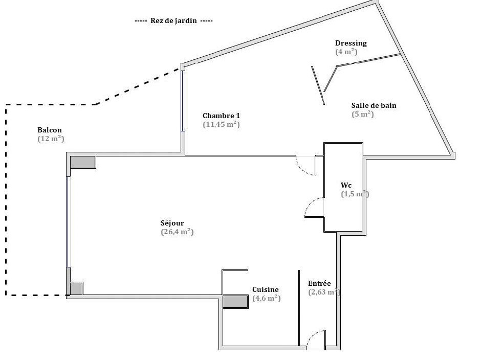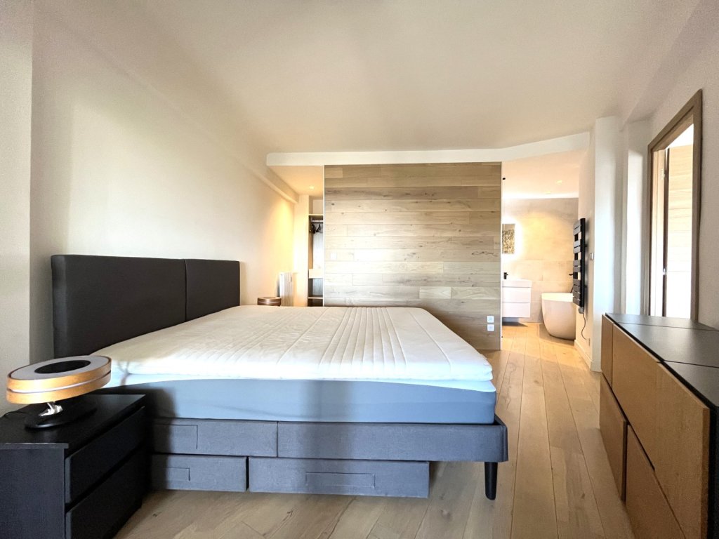 Il se compose : d'un séjour lumineux, d'une cuisine entièrement équipée, d'une chambre avec salle de bain attenante (baignoire + douche), d'un dressing attenant à la chambre, de volets roulants électriques et climatisation.