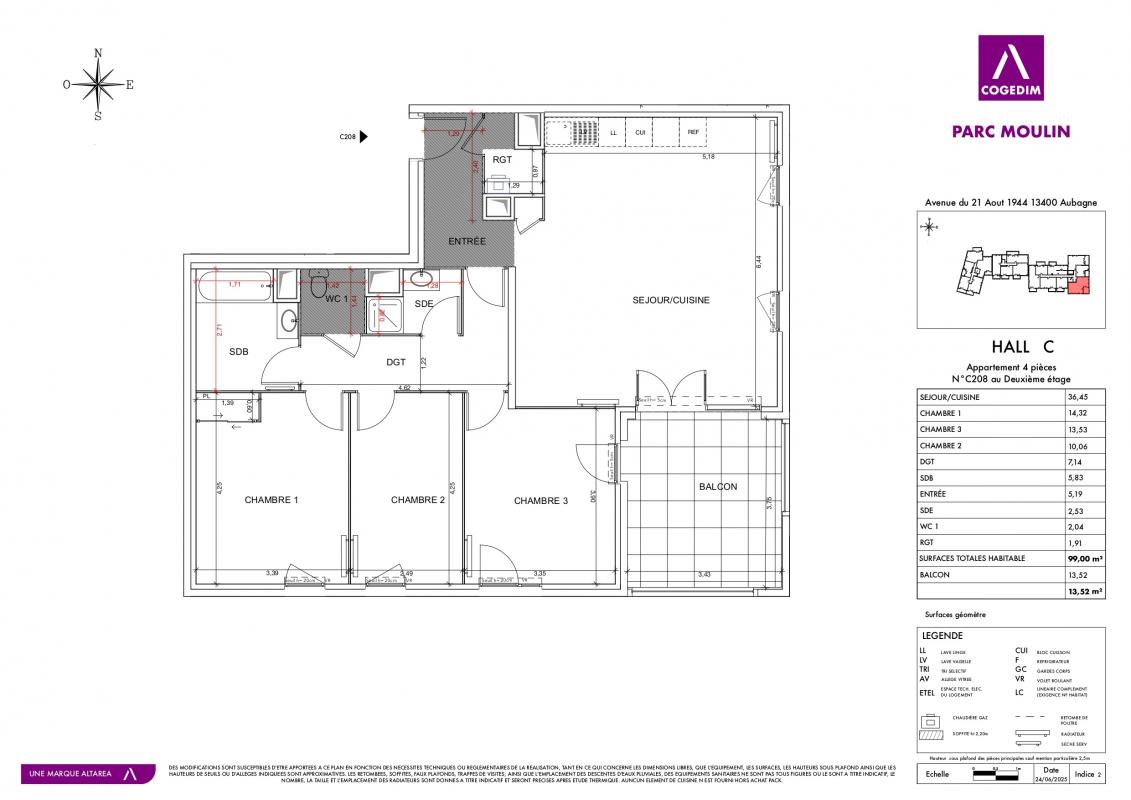 Très bel appartement de Type 4 en 2e Etage – 3 chambres – Surface habitable 99 m2