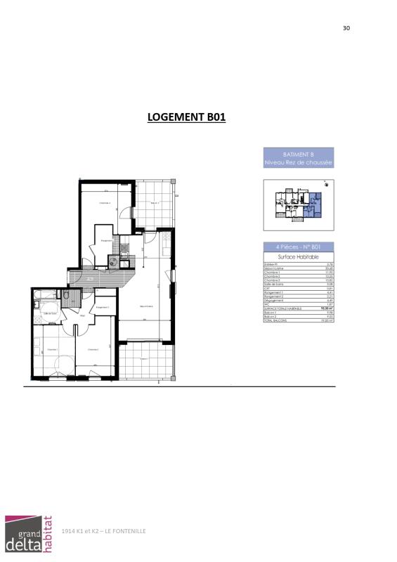 Très bel appartement de Type 4 au rez-de-chaussée – 3 chambres – Surface habitable 95.30 m2