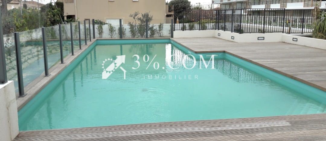 L'agence 3%. COM vous propose un magnifique T3 en rez de jardin SURELEVE, dans une petite résidence INTIMISTE, CALME ET SECURISEE avec PISCINE. Ce bien est situé à 15 minutes à pied de la plage de la pointe rouge entre le quartier de Bonneveine et de Marseilleveyre. L'appartement d'une superficie totale de 70 m2 environ est composé d'un séjour cuisine de plus de 30 m2, de deux chambres de 10 et 12 m2, d'une jolie salle d'eau moderne et fonctionnelle, d'un toilette séparé et des rangements. Ce bien LUMINEUX ET TRAVERSANT est entièrement CLIMATISE. Une grande terrasse à l'abri des regards et son jardin paysager sans vis à vis vous permettront de profiter d'un extérieur au calme totalisant 60 m2 environ de surface.