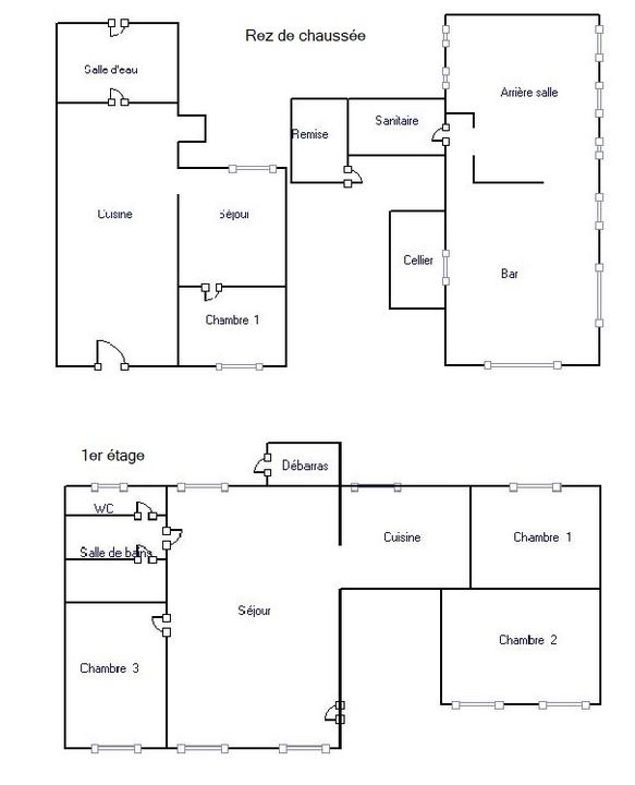 A l'étage : Un appartement de 4 pièces de 100 m² composé d'un séjour, une cuisine, trois chambres, une salle d'eau et w-c, donnant sur une terrasse et un jardin en contre bas.