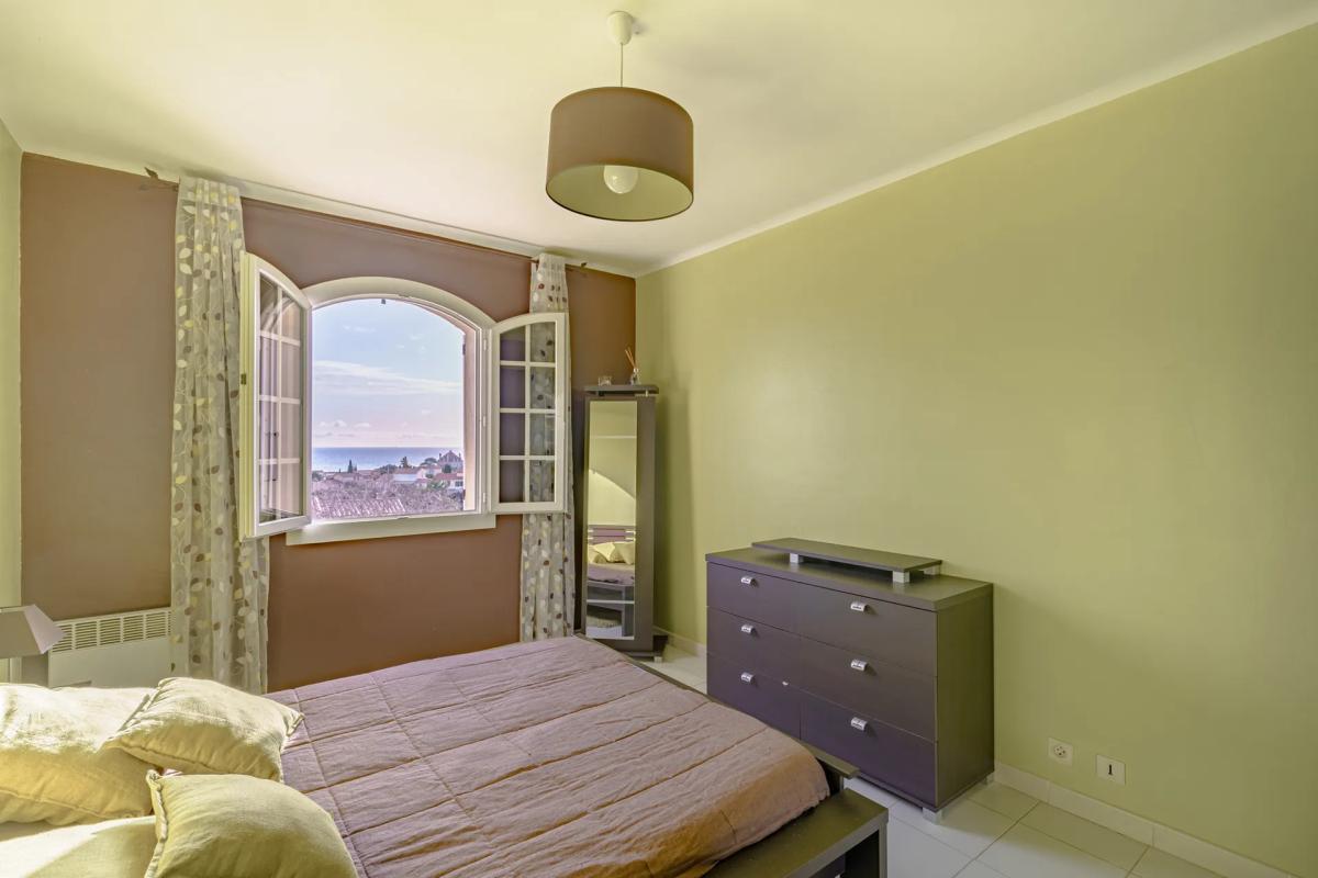 Le séjour, d'une luminosité exceptionnelle grâce à sa double exposition, dévoile une vue imprenable sur la mer et un accès direct à une piscine privée. Un espace de vie rêvé pour partager des moments inoubliables en famille ou entre amis.