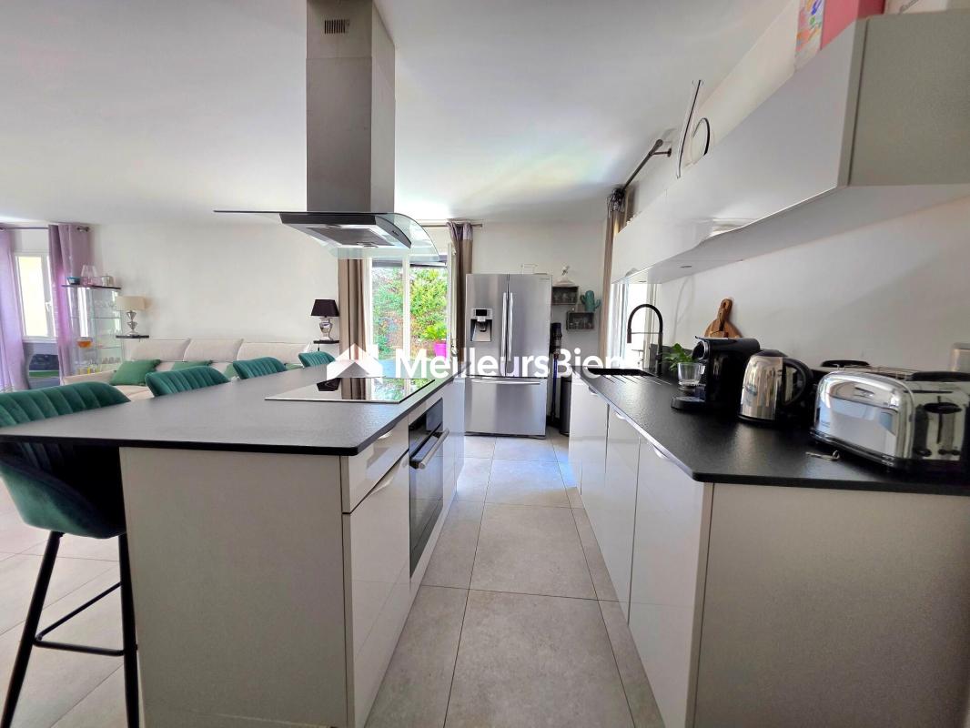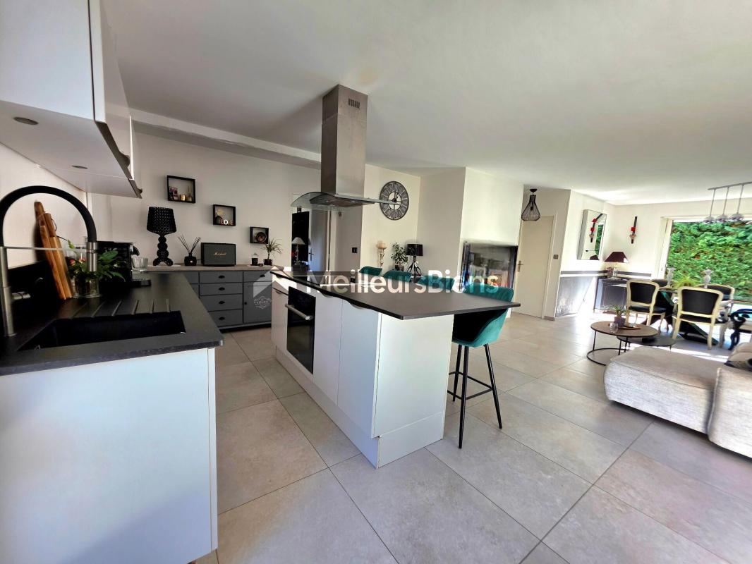 Une pièce de vie conviviale de 41m², avec cuisine moderne ouverte, entièrement équipée, donnant directement sur la piscine.