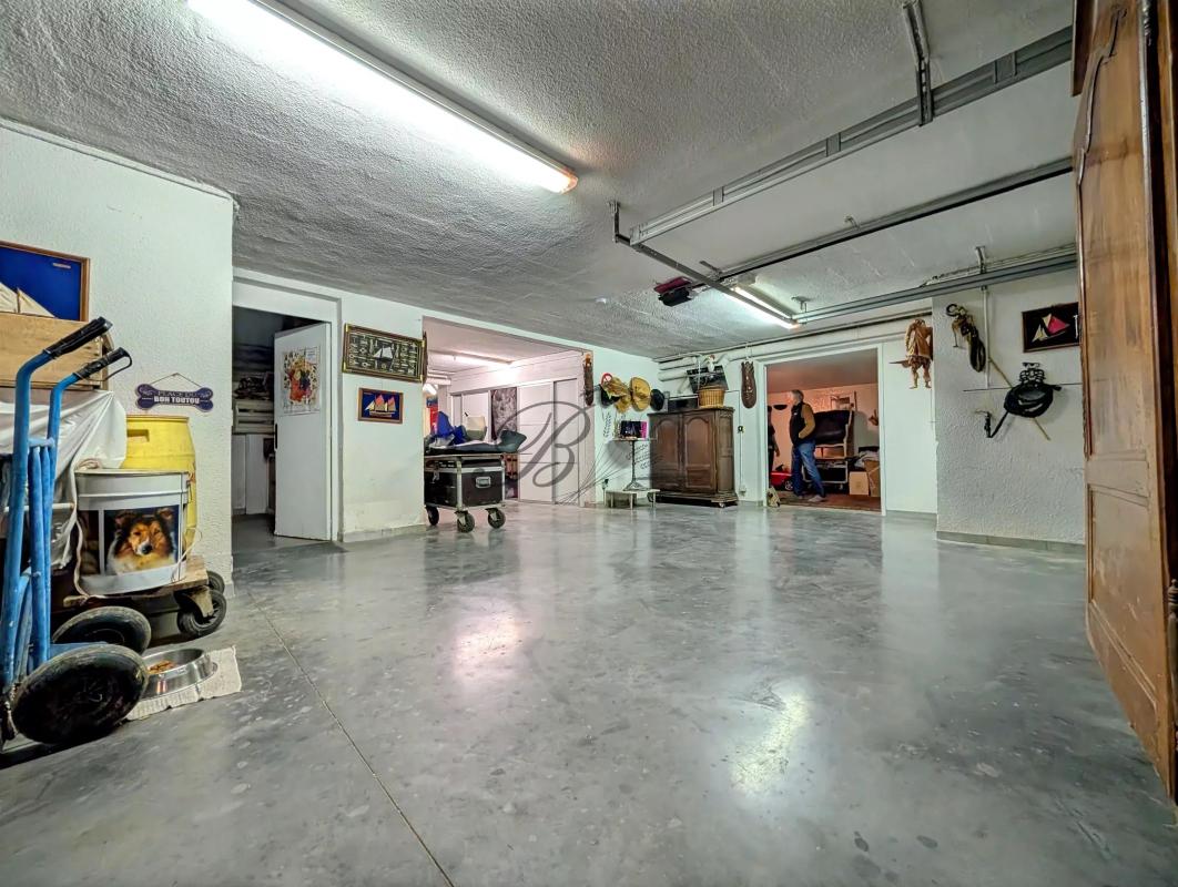 Le rez-de-chaussée de la bâtisse développe environ 180 m² et accueille deux garages, un atelier, une buanderie, une salle de jeux ainsi que de nombreux espaces de rangement.