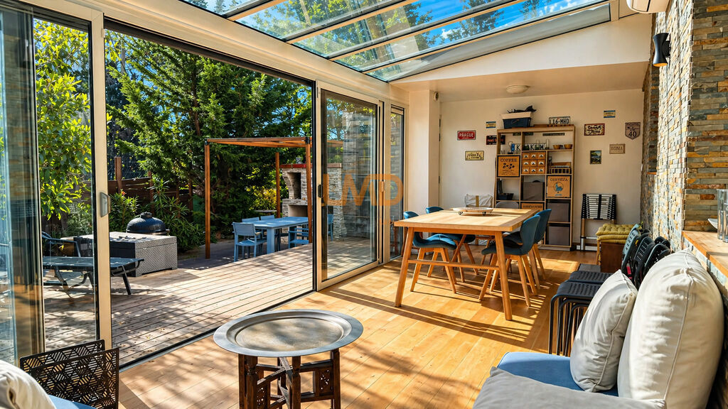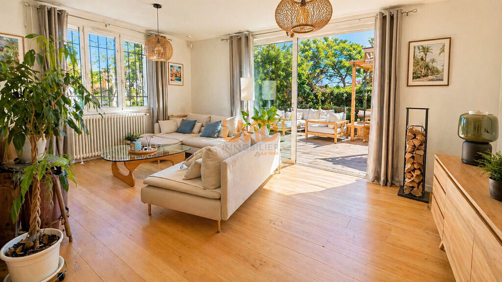 Implantée sur un terrain clos et arboré de 1 125 m², la propriété séduit immédiatement par son atmosphère paisible; ses espaces de vie généreux et baignés de lumière naturelle. La villa se compose actuellement de 3 habitations indépendantes. En rez-de-chaussée, elle propose une organisation fonctionnelle et harmonieuse avec une habitation de 125 m² incluant sa véranda chauffée, un salon avec son poêle à bois, une cuisine équipée avec une arrière cuisine, 1 suite parentale, 2 chambres. Au même niveau une habitation T2 de 35 m² qui peut communiquer avec l'habitation principale. En rez-de- jardin, un magnifique T 2 de 65 m² entièrement équipé et indépendant. Prestations de haute qualité et contemporaine, Les terrasses extérieures constituent un véritable prolongement de la maison. Le jardin piscinable offre un espace de détente avec son boulodrome et un espace pour le stationnement de plusieurs véhicules.