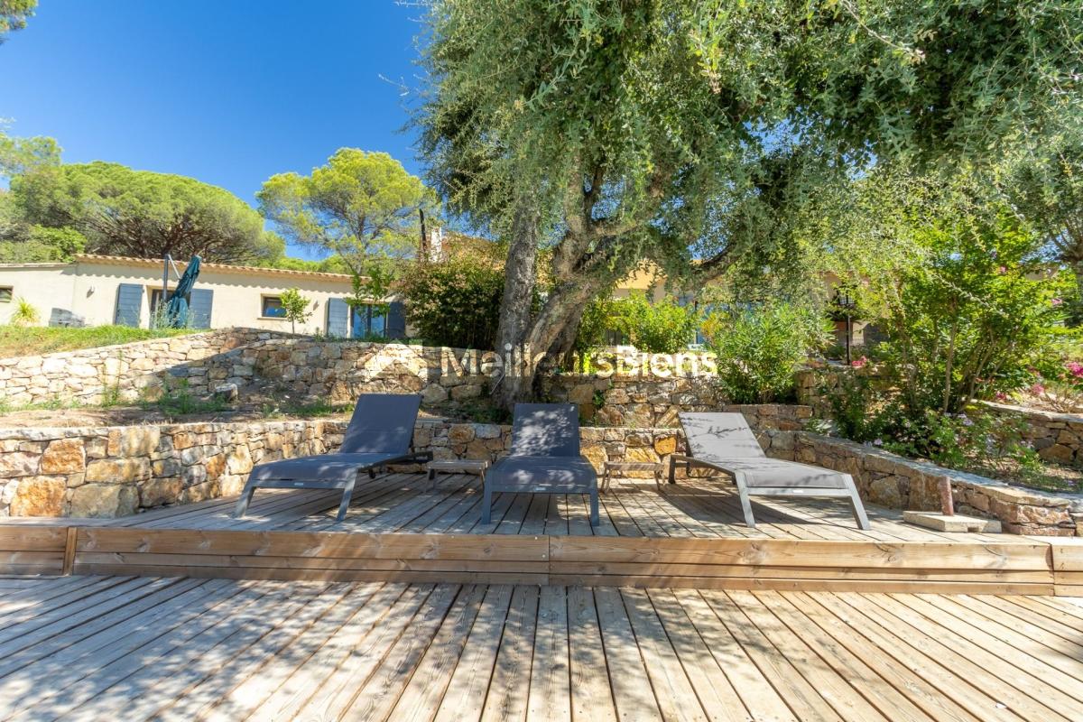 Terrain aménagé et arboré de 8790 m², planté d'essences méditerranéennes, garantissant une tranquillité de voisinage.