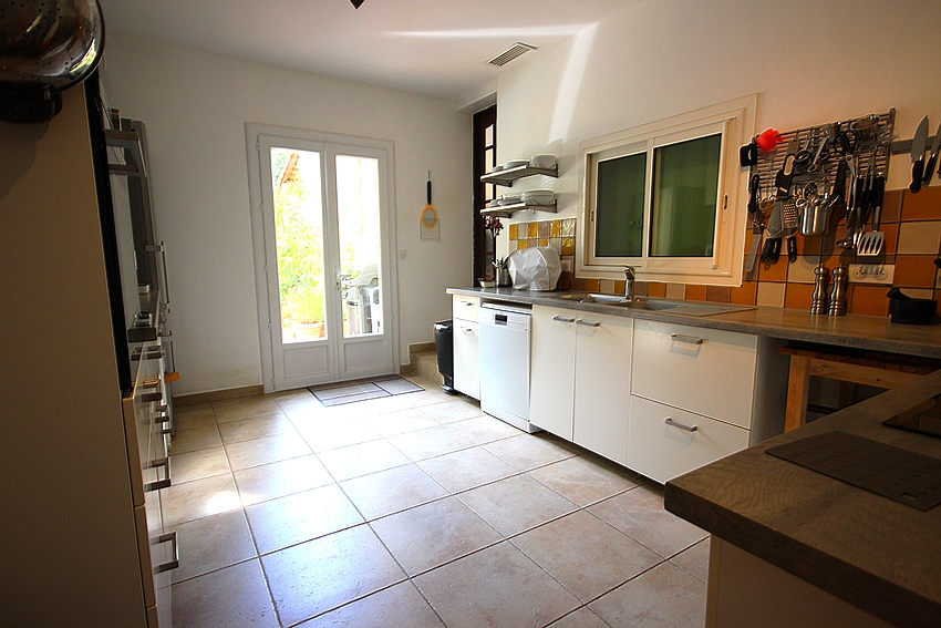La cuisine indépendante, totalement refaite en 2018, est équipée d'un électroménager haut de gamme. Elle s'ouvre directement sur une grande terrasse plein sud de 52 m², idéale pour vos repas en extérieur ou vos moments de détente.