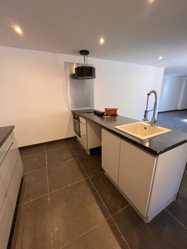 - Entrée par une agréable terrasse couverte de 8 m²par laquelle vous accédez à l'appartement principal qui se compose comme suit : un beau séjour salle à manger avec cuisine ouvert entièrement équipée, un wc, buanderie, rangement.