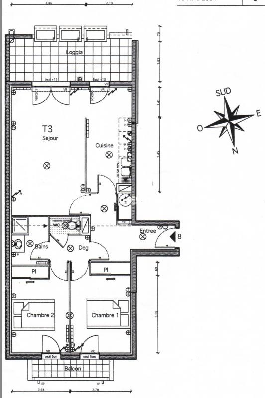Il se compose d'un hall d'entrée avec placard, d'une grande cuisine équipée, ( possible d'ouvrir facilement si besoin sur le séjour), un séjour, un coin nuit avec 2 chambres donnant sur le balcon, une salle de bain et des wc séparés.
