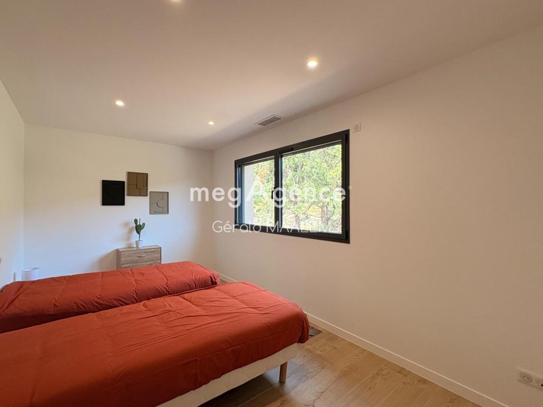 Elle se compose d'une grande pièce de vie salon/salle à manger avec cuisine ouverte ouvrant sur le jardin et la piscine, de 5 chambres dont deux suites parentales, de deux salles d'eau, wc séparé et d'un bureau .