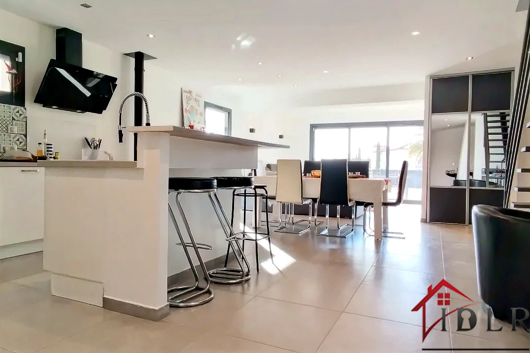 Au rez-de-chaussée vaste salon-séjour extrêmement lumineux ouvrant sur la terrasse par une baie vitrée, cuisine américaine entièrement équipée, une chambre avec terrasse, salle d'eau, WC séparés et une buanderie. Au premier étage trois chambres dont une avec grand dressing et terrasse panoramique de 17 mètres carrés plein sud avec vue mer, une grande salle de bain avec douche et baignoire, WC séparés.