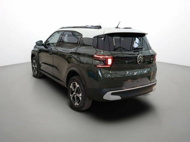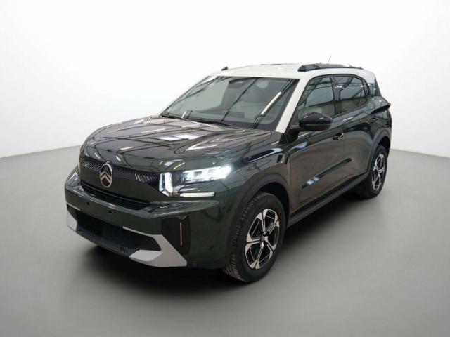 NOUVEAU Hybride 145 ch Aut Max, hybride, or, 27/02/2026, 1 Prise USB type-C (charge rapide 3A) sur la console centrale, 1 Prise USB type-C (charge standard et data) sur la planche de bord, 2 Prises USB type-C (charge rapide 3A) en rang 2, 6 Airbags (frontaux, latéraux AV et rideaux), ABS, ESP, AFU, REF, Aide au démarrage en pente, Aide au stationnement AR, Aide au stationnement AV, Allumage automatique des feux de croisement, Appuis-tête AV réglables en hauteur, Avertisseur sonore monoton, Aérateurs latéraux en noir brillant et 2 aérateurs en zone centrale sur planche de bord, Banquette AR avec dossier fractionnable 2/3 et 1/3, Barres de toit Noir Brillant, Boîte automatique 6 rapports, Boîtier télématique: Appel d'urgence et Citroën Assistance les services Connect ONE pendant une période de 10 ans, Caméra de recul, Centre de roue noir avec logo, Citroën Head up Display (affichage tête haute couleur) - TFT, Climatisation automatique, Commutation automatique des feux de route, Condamnation centralisée avec PLIP, Console centrale haute avec accoudoir et rangement fermé, Coques de rétroviseurs extérieurs Noir Brillant, Direction assistée, Décors extérieurs Noir Brillant, Décors sur les panneaux de portes AV/AR et sur la planche de bord Sidérite, Détection de sous-gonflage, Eclairage d'accompagnement et d'accueil, Eclairage d'ambiance monochromatique, Ecran central 10, 25, Elargisseurs d'ailes Noir Mat, Enjoliveurs 17, Essuie-vitre AV automatique (capteur de pluie), Feux AR 3D à LED, Feux diurnes à LED, Fixations ISOFIX sur les deux places latérales, Frein de stationnement électrique, Garnissage Maille Hello Noire /Toile enduite Gris clair Ambiance Metropolitan Grey avec Sièges Advanced Comfort, Jantes alliage 17, Lève-vitres AR électriques (descente séquentielle), Lève-vitres AV électriques (descente séquentielle), Navigation 3D sur écran central 10, 25, Ordinateur de bord multifonctions avec indicateur de température exterieure, Pare-brise acoustique, Plafonnier AV à LED avec lecteurs de cartes, Planche de bord Sofa recouverte de textile, Plancher de coffre escamotable, Poches aumônières au dos des sièges AV, Poignées de maintien au rang 2, Poignées de portes extérieures Noir Brillant, Prise 12 V à l'AR de console centrale, Projecteurs LED, Recharge sans fil pour smartphone (puissance 15W), Répétiteur de clignotant dans le rétroviseur à LED, Rétroviseur intérieur électrochrome, Rétroviseurs extérieurs rabattables électriquement et dégivrants, Rétroviseurs extérieurs électriques, Sabots AV et AR, Siège conducteur réglable en hauteur, Suspension Citroën Advanced Comfort, Système de surveillance d'angle mort, TCS (Contrôle de la traction), Toit bi-ton, Témoin de non-bouclage des ceintures de sécurité conducteur et passagers, Vitres et lunette AR surteintées, Vitres latérales teintées, Volant Gainé avec décor chrome, Volant réglable en hauteur et en profondeur, Volet d?occultation du miroir de courtoise conducteur et passager, Teinte de caisse métallisée bi-ton Vert Montana/ Toit Blanc Opale, Active Safety Brake (freinage automatique d'urgence) (Pack Safety), Alerte active de franchissement involontaire de ligne (Pack Safety), Alerte attention conducteur (Pack Safety), Reconnaissance des panneaux de vitesse (Pack Safety), Régulateur - limiteur de vitesse (Pack Safety)